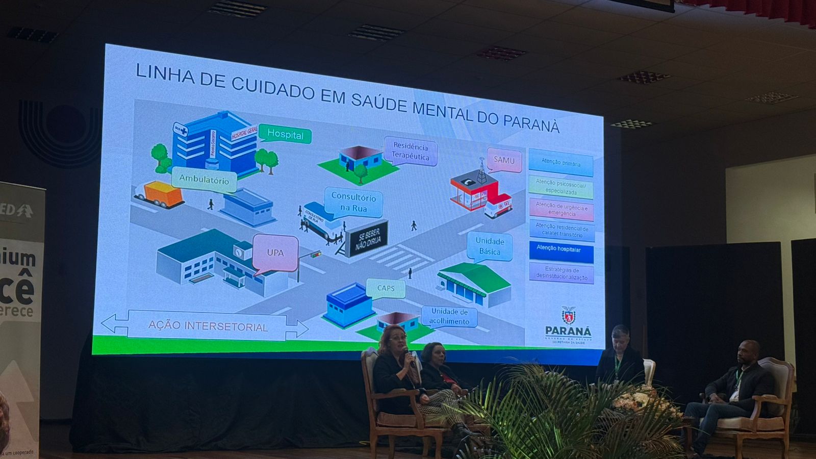 O evento teve início com uma palestra ministrada por representantes da Divisão de Saúde Mental da Secretaria de Estado da Saúde (SESA), que apresentaram as principais diretrizes e os avanços da política estadual. Em seguida, a mesa-redonda “A Saúde e o SUS que queremos” trouxe reflexões relevantes conduzidas por nomes reconhecidos na área: a psicóloga Dra. Tatiane Pecoraro, a psicóloga Ma. Denize Teixeira e o médico de família e comunidade Esp. Mateus Fagundes, com mediação das coordenações de saúde mental da macrorregião.