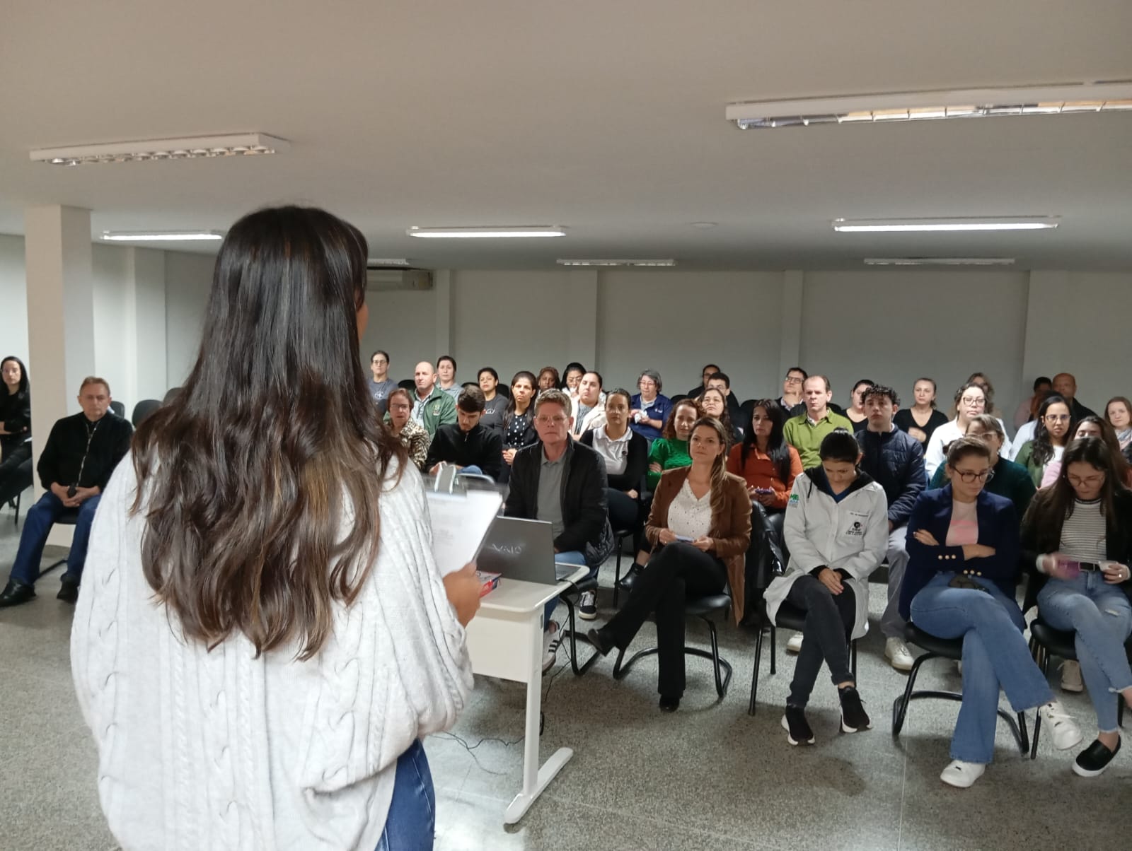 O encerramento ficou a cargo da gerente do programa QualiCIS, Franciele Neis, que agradeceu a participação ativa dos profissionais e reforçou o compromisso com a formação contínua e o cuidado humanizado.