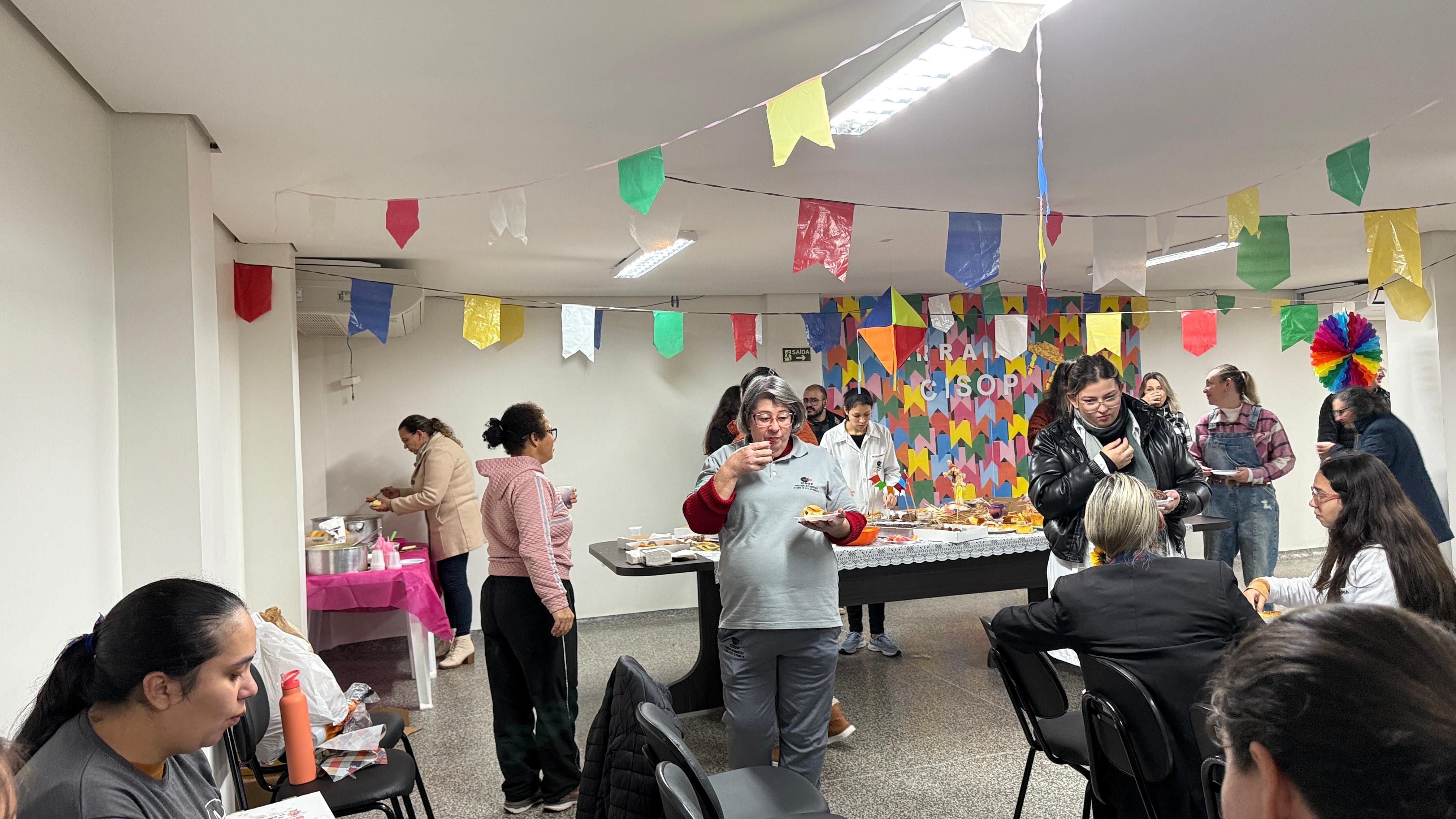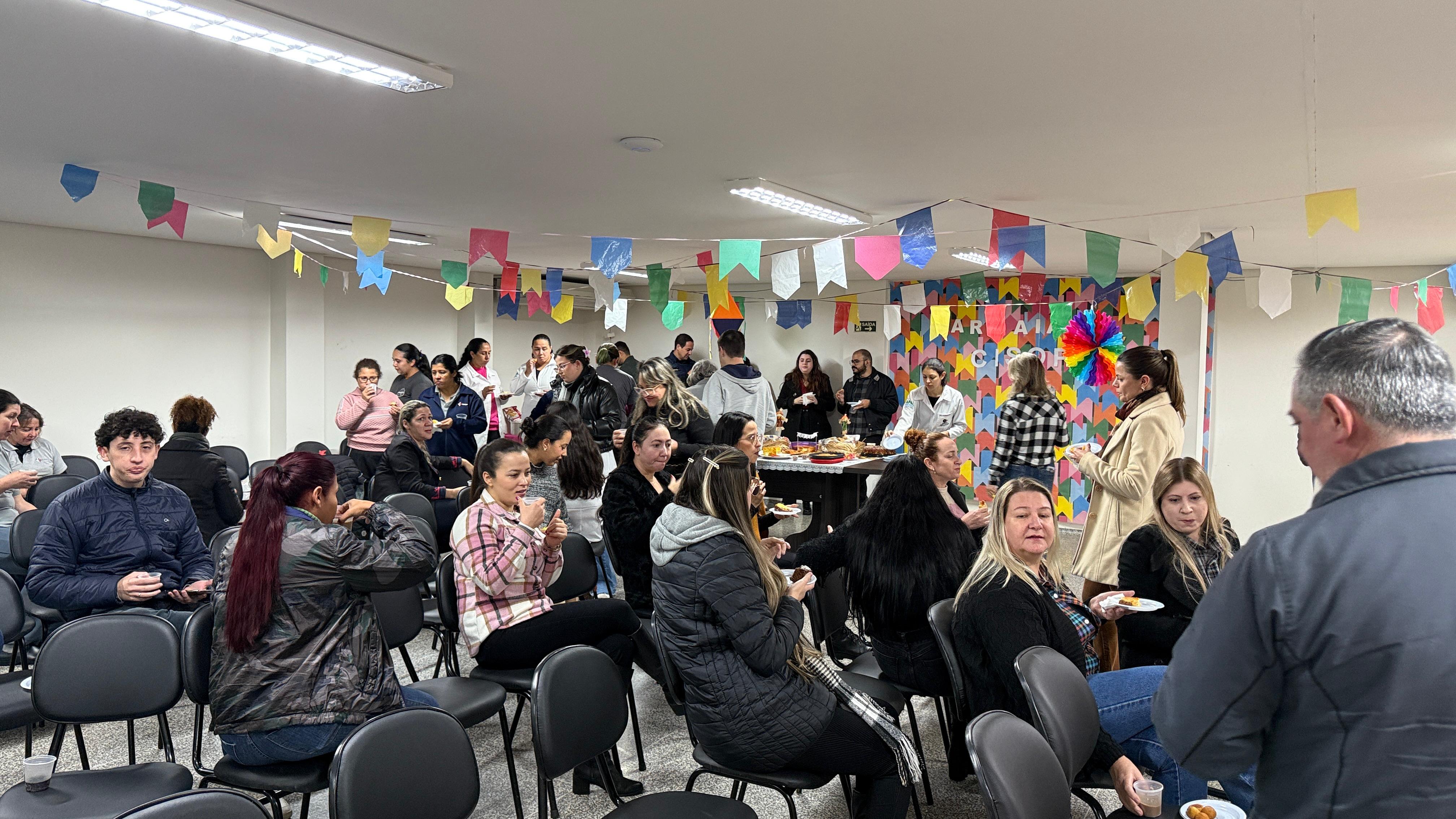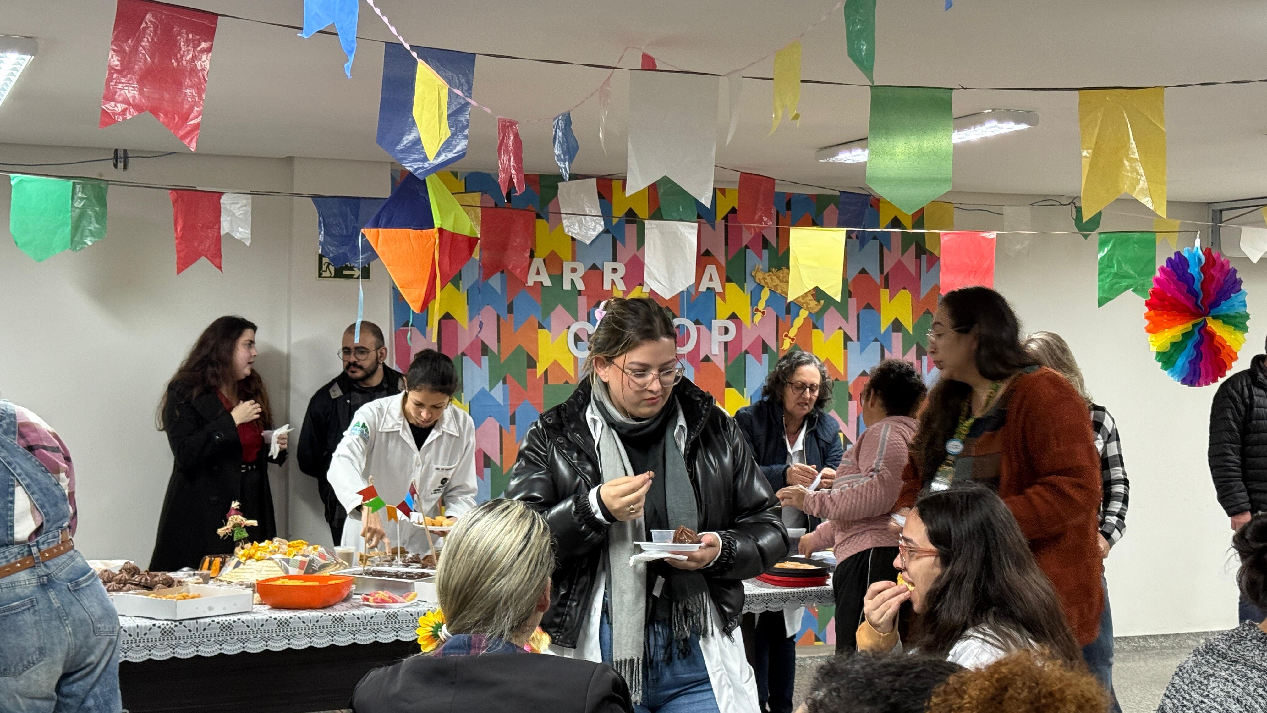 O evento contou com uma decoração temática, comidas típicas, e até 'colaboradores vestidos de caipira' que animaram ainda mais o encontro. Além da variedade gastronômica — com direito a bolo de milho, pipoca, quentão sem álcool e paçoca e salgados — o destaque ficou por conta do clima de união e da participação espontânea dos servidores, que se engajaram desde a organização até a celebração.